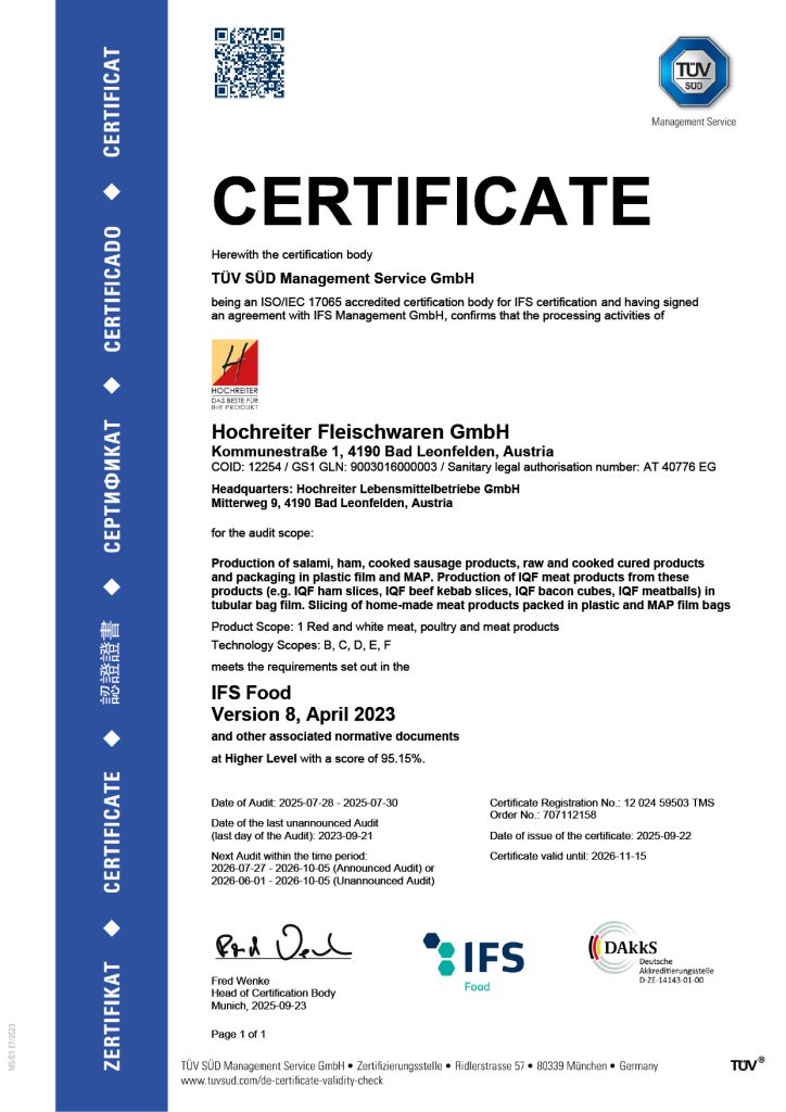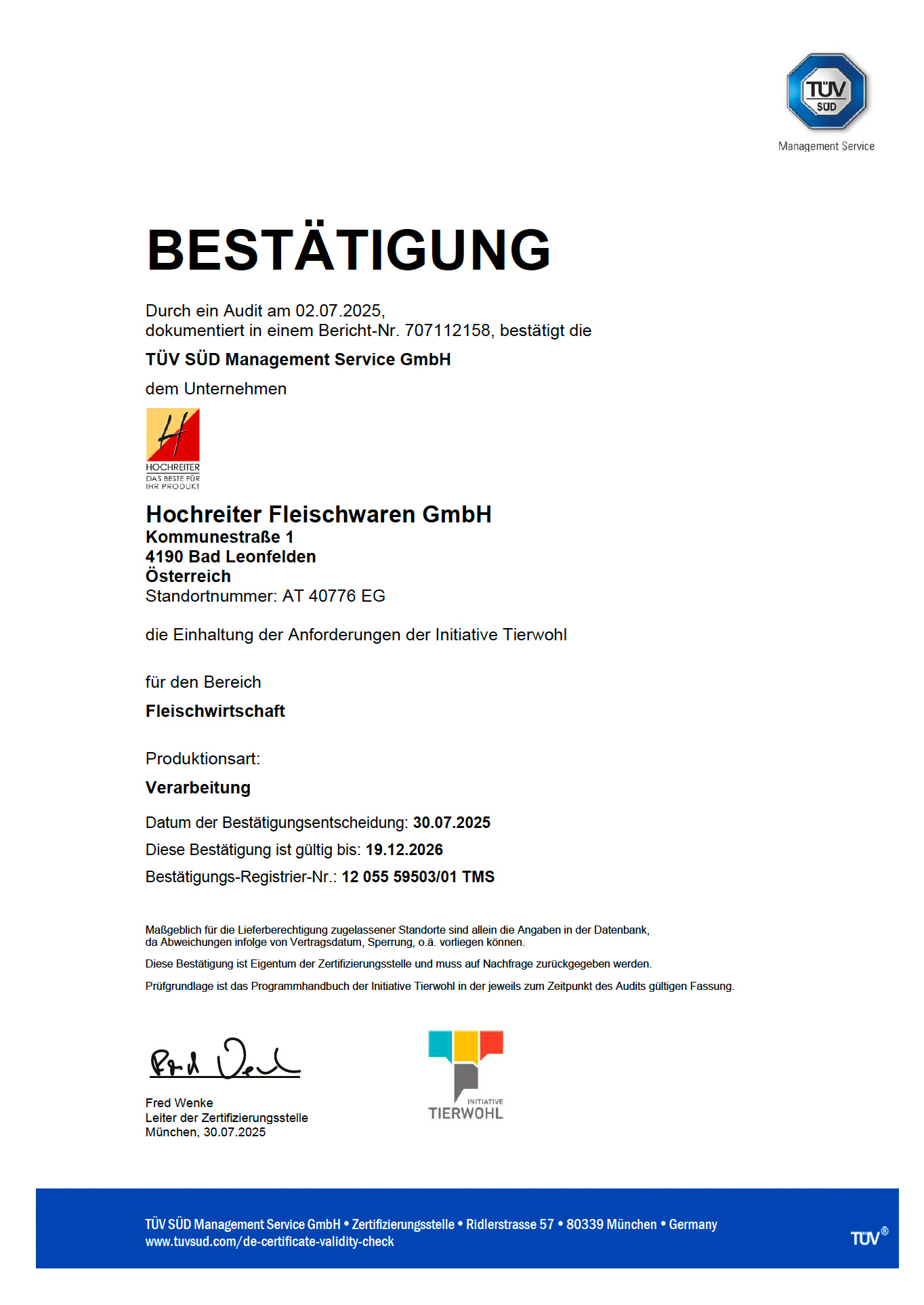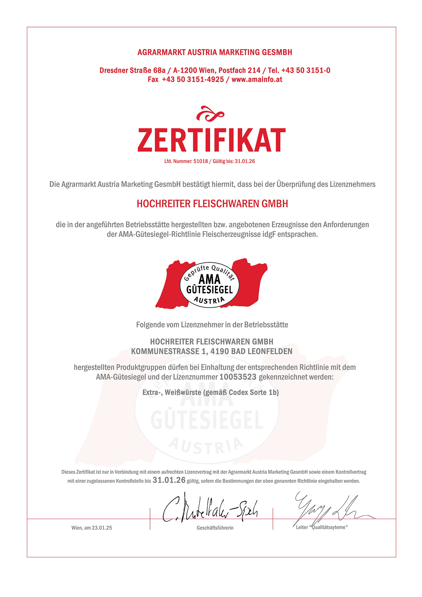 Hochreiter Fleischwaren GmbHKommunestraße 14190 Bad Leonfelden